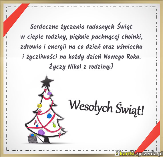 Najserdeczniejsze życzenia cudownych Świąt Bożego Narodzenia, pełnych rodzinnego ciepła i radości. Świąt dających radość i odpoczynek, oraz nadzieję na Nowy Rok!
