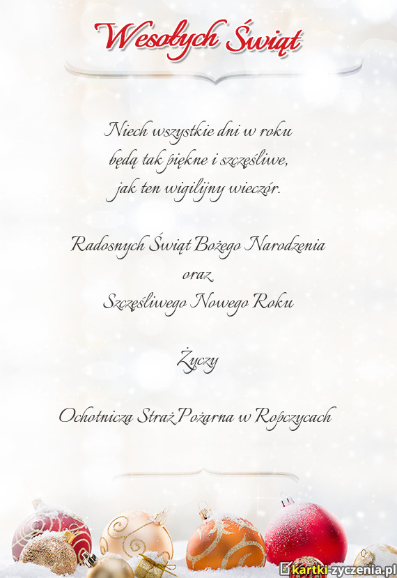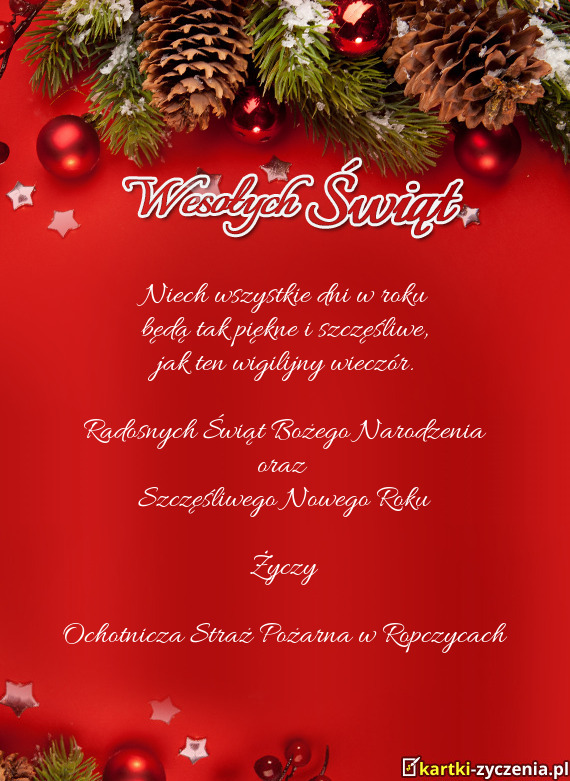 Radosnych Świąt Bożego Narodzenia oraz Szczęśliwego Nowego Roku Życzy Ochotnicza