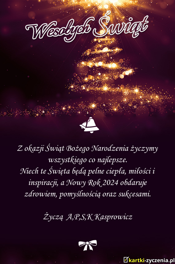 Niech te Święta będą pelne ciepła, miłości i inspiracji, a Nowy Rok 2024 obdaruje Was zdrowie