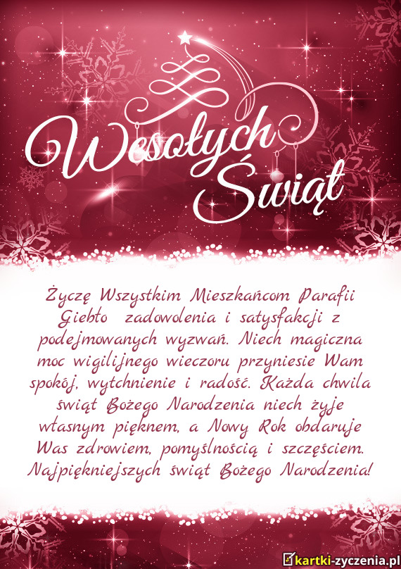 ūyczę Wszystkim Mieszkańcom Parafii Giebło zadowolenia i satysfakcji z podejmowanych wyzwań. N