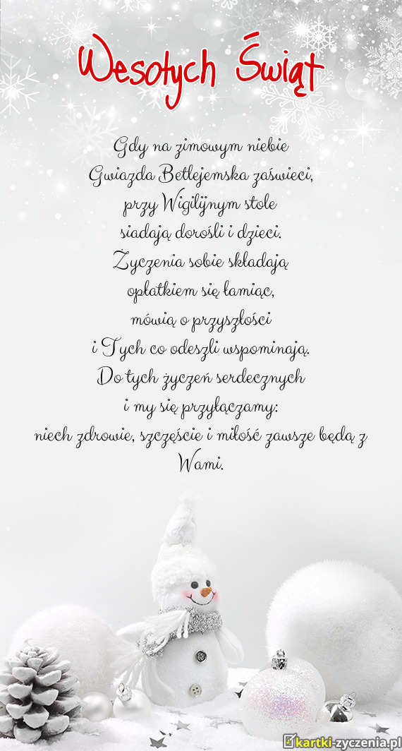 Najserdeczniejsze życzenia cudownych Świąt Bożego Narodzenia, pełnych rodzinnego ciepła i radości. Świąt dających radość i odpoczynek, oraz nadzieję na Nowy Rok!