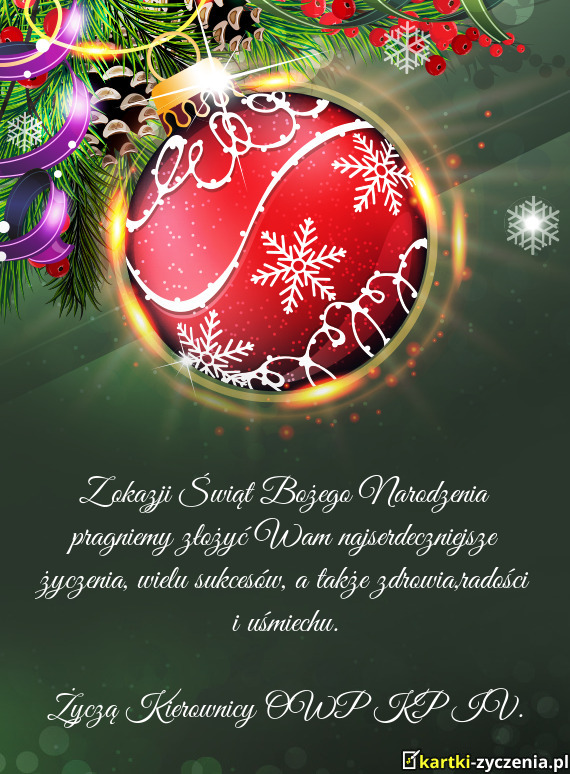 Z okazji Świąt Bożego Narodzenia pragniemy złożyć Wam najserdeczniejsze życzenia, wielu sukce