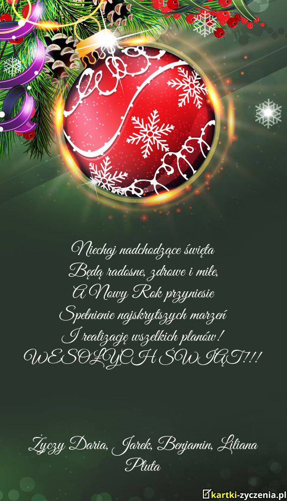 Niezapomnianych i prawdziwie rodzinnych świąt, upływających we wspaniałej atmosferze i nigdy ni