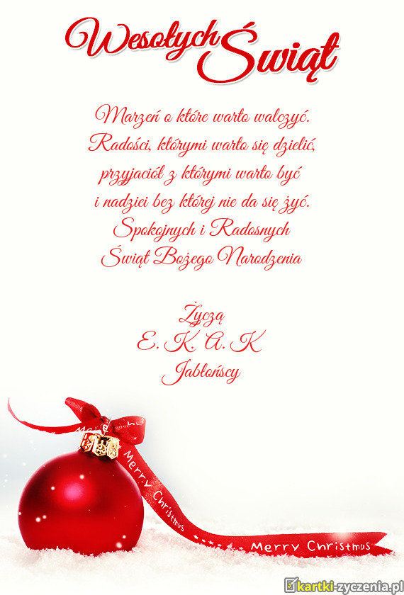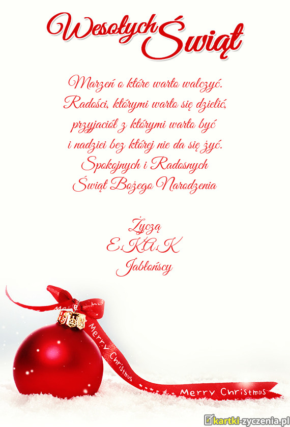 Spokojnych i Radosnych Świąt Bożego Narodzenia Życzą E