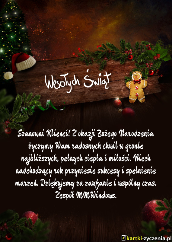 Szanowni Klienci! Z okazji Bożego Narodzenia życzymy Wam radosnych chwil w gronie najbliższych, p