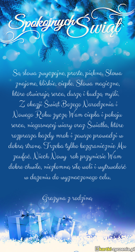 Z okazji Świąt Bożego Narodzenia i Nowego Roku życzę Wam ciepła i pokoju serca, niegasnącej