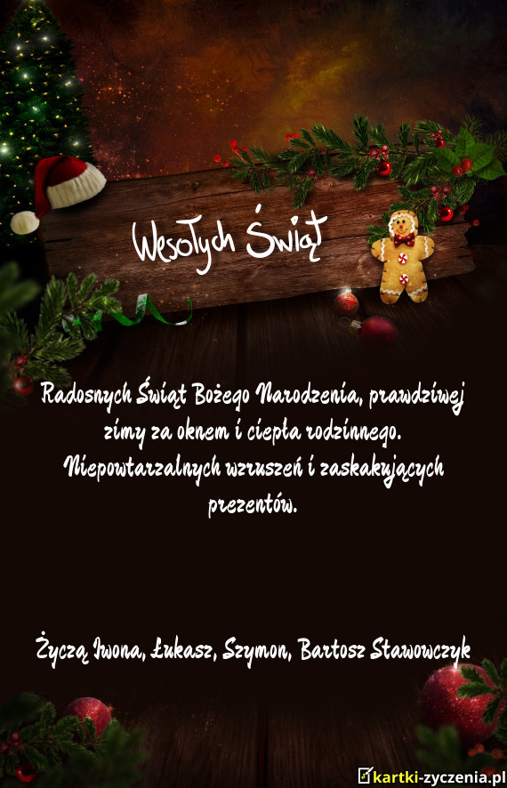 Radosnych Świąt Bożego Narodzenia, prawdziwej zimy za oknem i ciepła rodzinnego. Niepowtarzalnyc