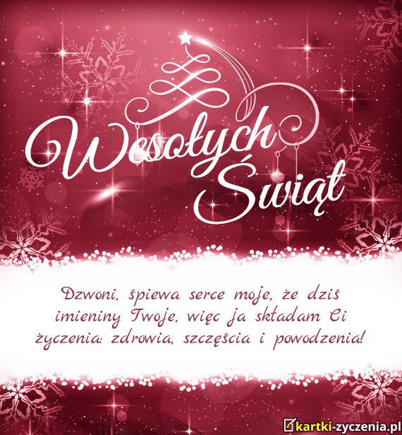 Dzwoni, śpiewa serce moje, że dziś imieniny Twoje, więc ja składam Ci życzenia: zdrowia, szczęścia i powodzenia!