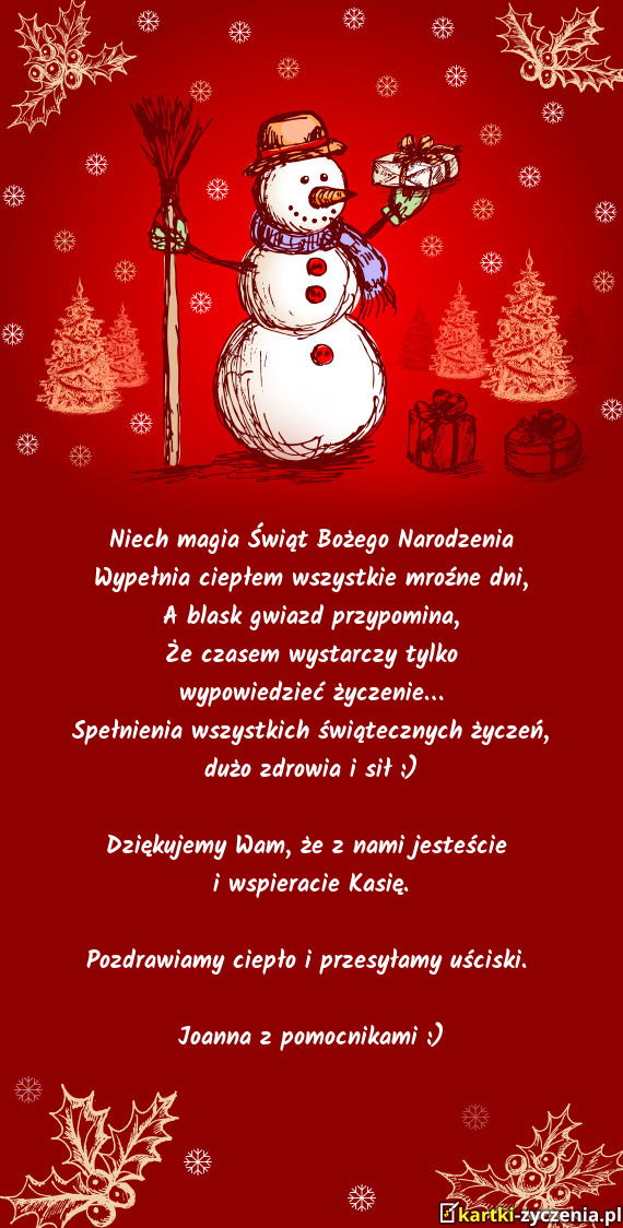 Świąt Bożego Narodzenia wypełnionych radością i miłością,