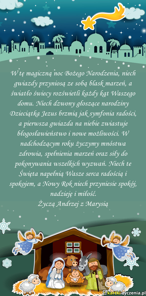 W tę magiczną noc Bożego Narodzenia, niech gwiazdy przyniosą ze sobą blask marzeń, a światło