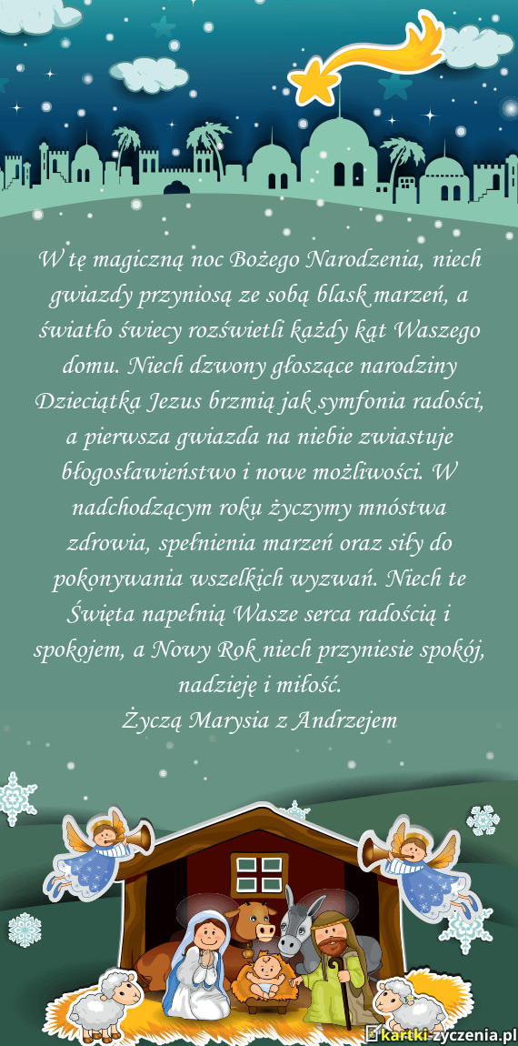 świecy rozświetli każdy kąt Waszego domu. Niech dzwony głoszące narodziny Dzieciątka Jezus b