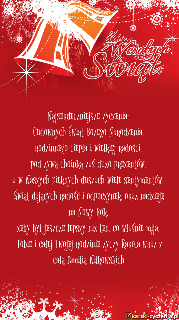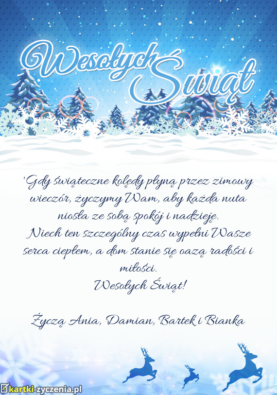 "Gdy świąteczne kolędy płyną przez zimowy wieczór, życzymy Wam, aby każda nuta niosła ze so