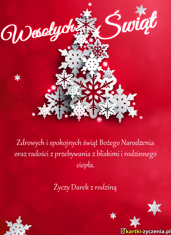 Zdrowych i spokojnych świąt Bożego Narodzenia oraz radości z przebywania z bliskimi i rodzinnego