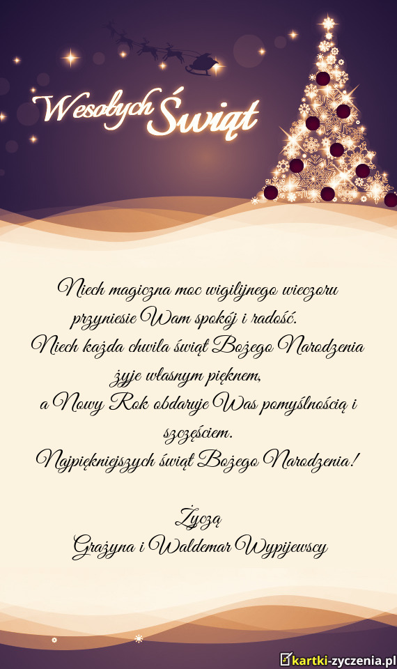 Niech magiczna moc wigilijnego wieczoru przyniesie Wam spokój i radość.