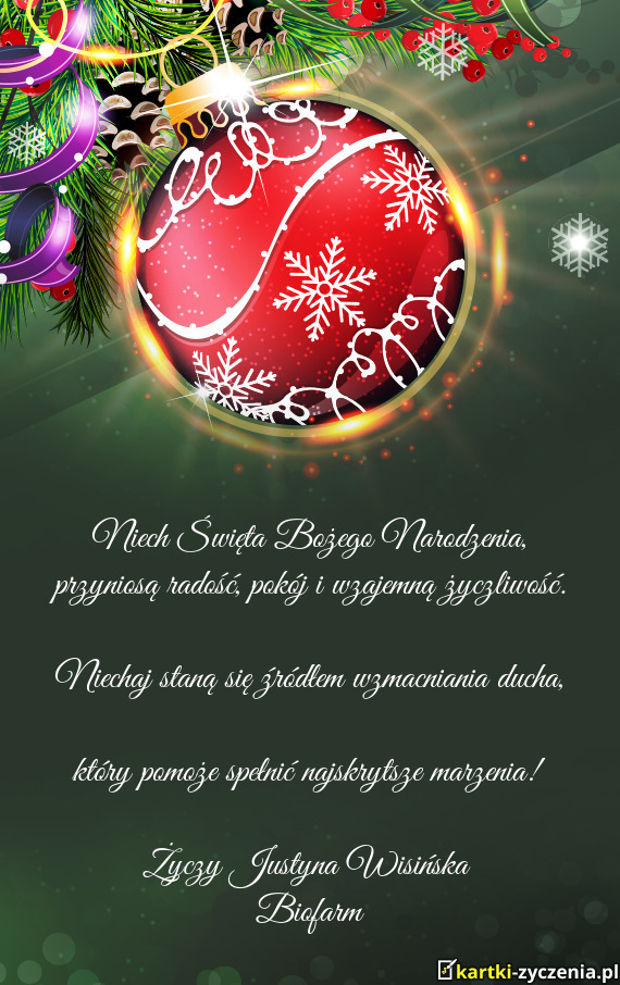 Z okazji Świąt Bożego Narodzenia życzy spokoju i