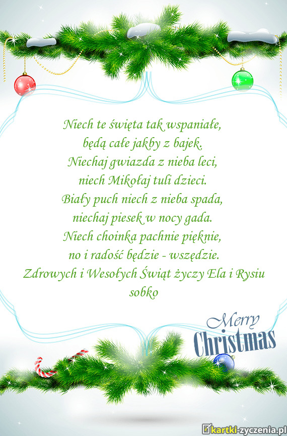 Zdrowych i Wesołych Świąt życzy Ela i Rysiu sobko