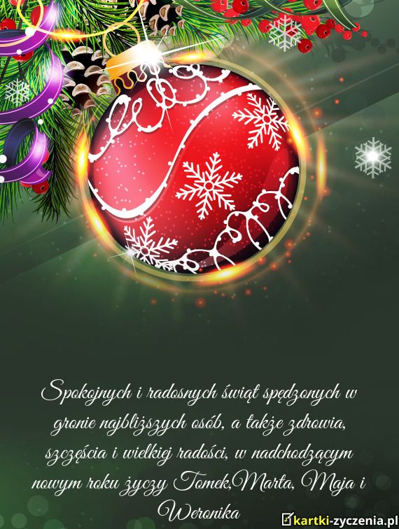 Niech te nadchodzące Święta Bożego Narodzenia bedą dla Was cudownym, rodzinnym czasem, spędzo