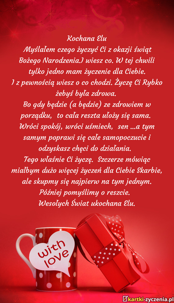 Myślałem czego życzyć Ci z okazji świąt Bożego Narodzenia.I wiesz co. W tej chwili tylko jed