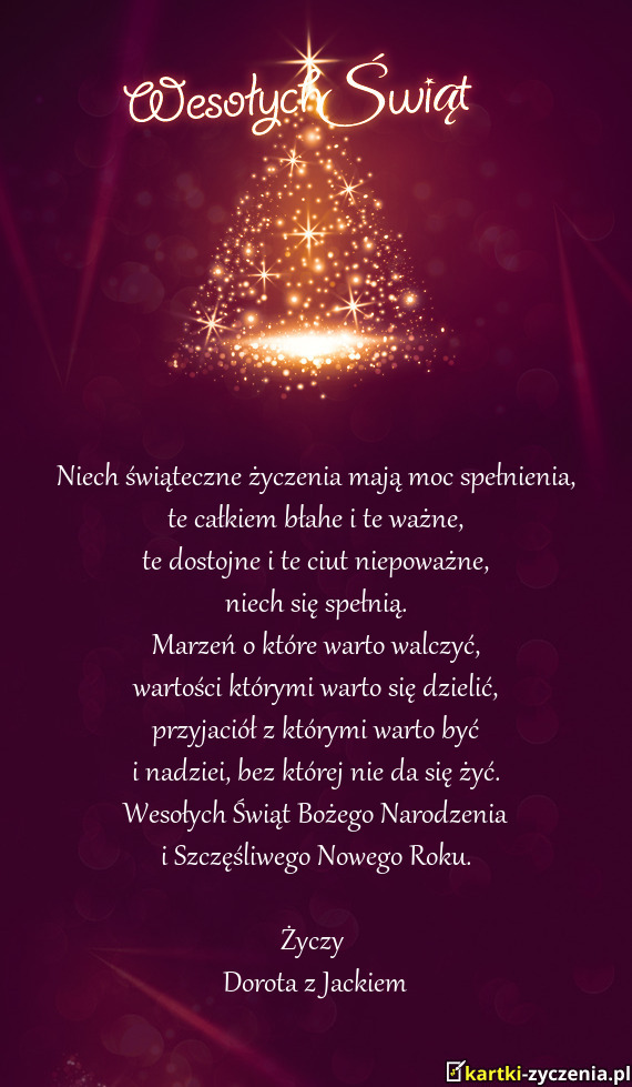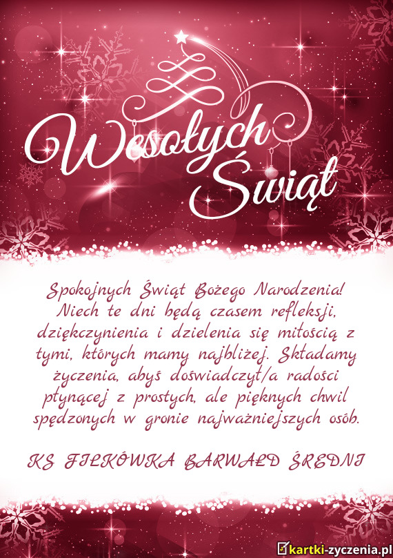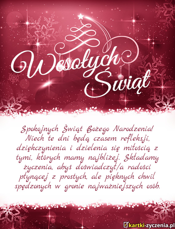 Z okazji Świąt Bożego Narodzenia życzy spokoju i