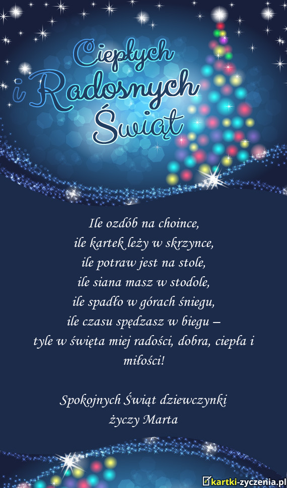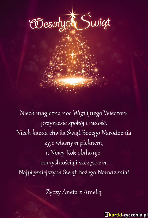 Niech nadchodzące Święta Bożego Narodzenia wypełnią Cię nowym spokojem, radością i miłośc