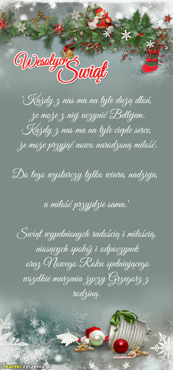 Zdrowych i spokojnych Świąt Bożego Narodzenia życzy Monia z rodziną