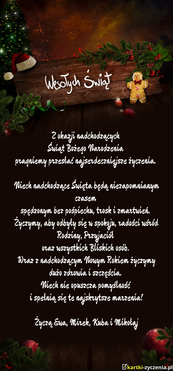 ūyczymy, aby odbyły się w spokoju, radości wśród Rodziny, Przyjaciół