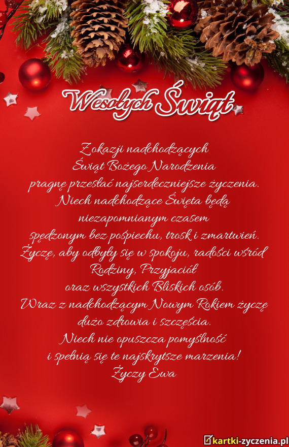 ūyczę, aby odbyły się w spokoju, radości wśród Rodziny, Przyjaciół