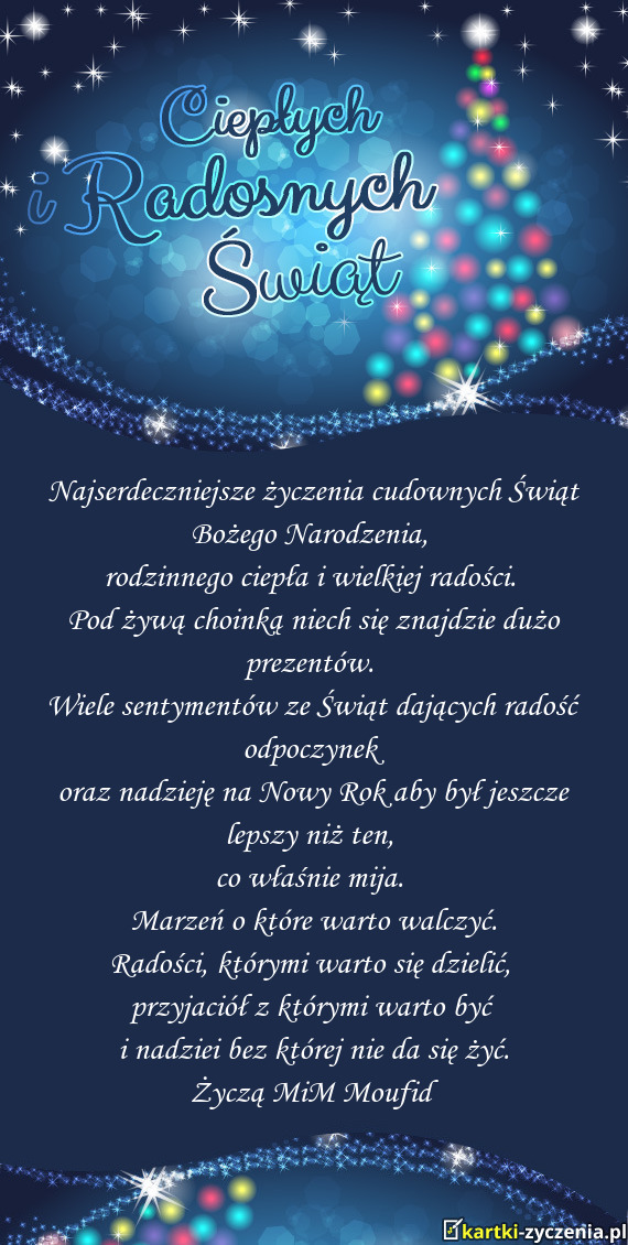 Świąt Bożego Narodzenia, pełnych rodzinnego ciepła i radości