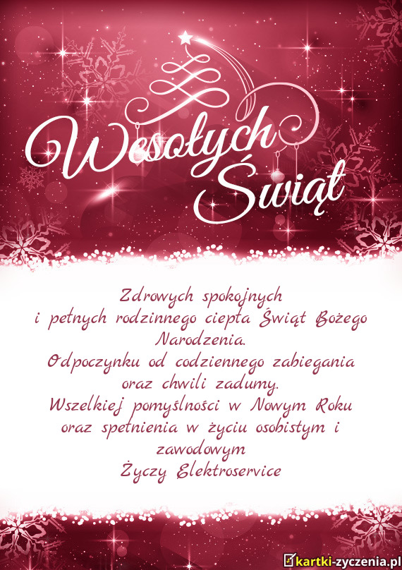 Zdrowych Wesołych i Spokojnych Świąt Bożego Narodzenia Spędzonych w Gronie Rodziny oraz Wszelki
