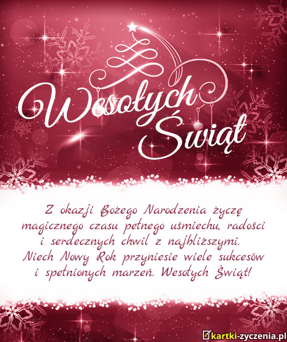 Z okazji Bożego Narodzenia życzę magicznego czasu pełnego uśmiechu, radości i serdecznych chwi