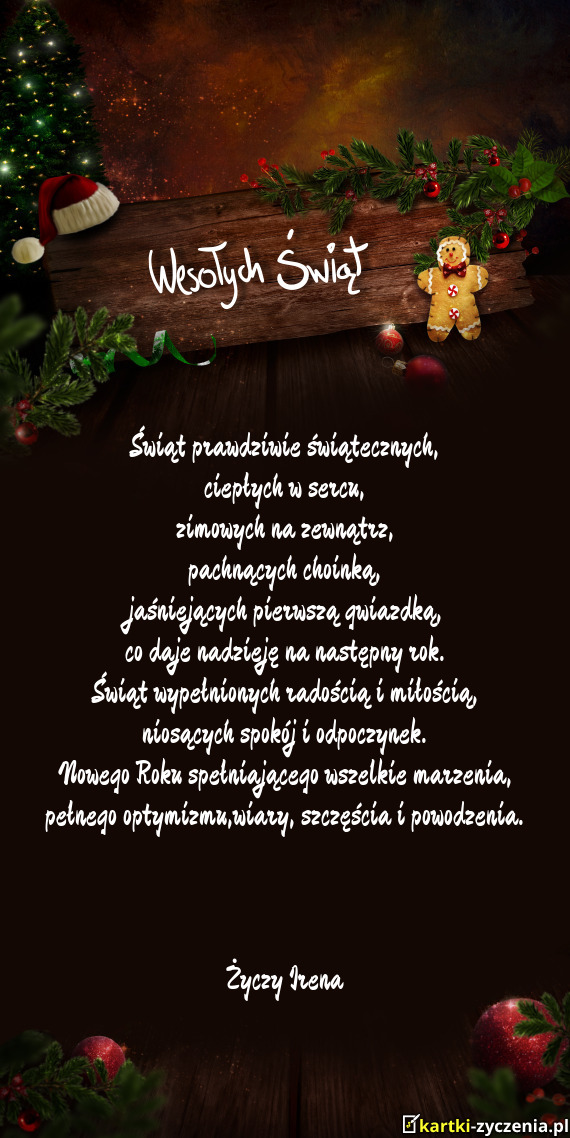 Świąt prawdziwie świątecznych, ciepłych w sercu,