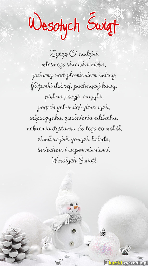 Niech czas Bożego Narodzenia będzie pełen ciepła, radości i wytchnienia od codziennych trudów