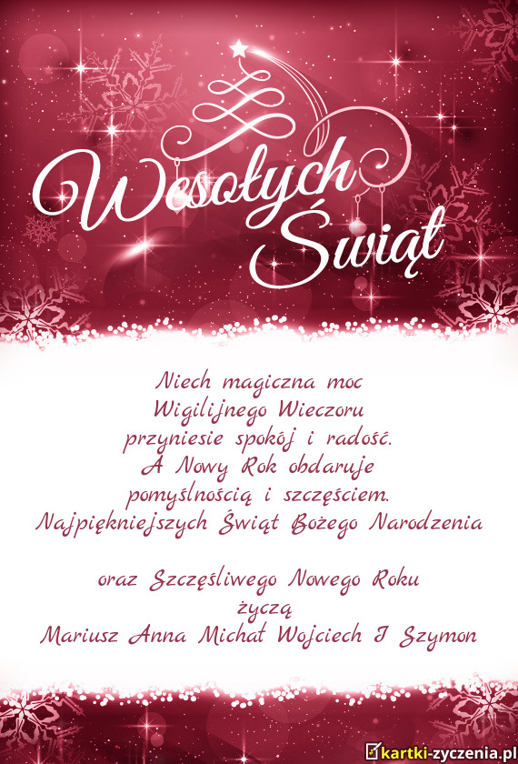 Wraz z nadchodzącym Nowym Rokiem życzę dużo zdrowia i szczęścia