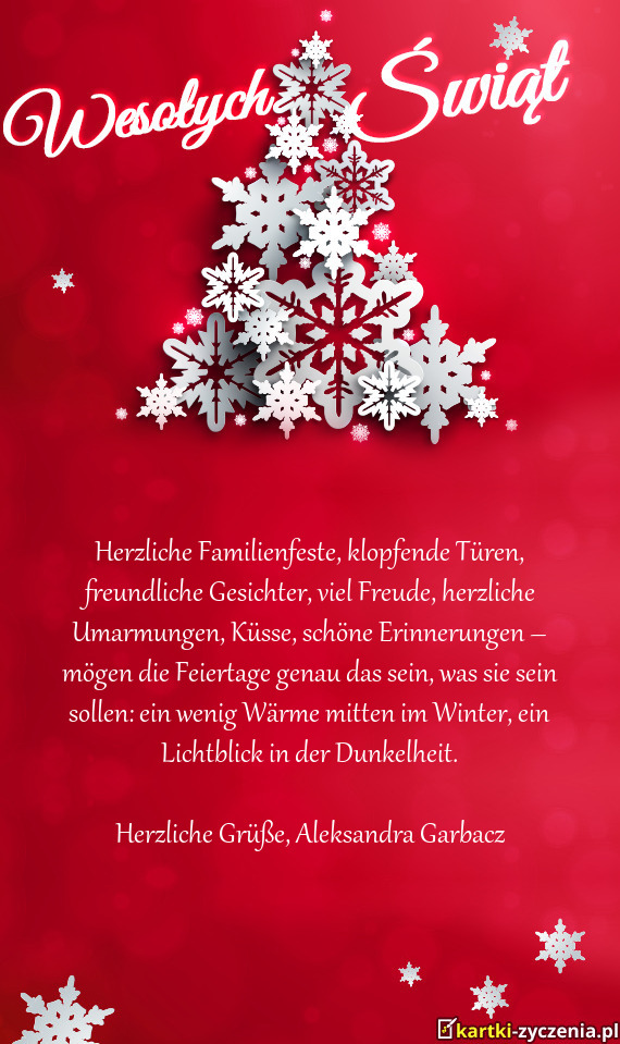 Herzliche Familienfeste, klopfende Türen, freundliche Gesichter, viel Freude, herzliche Umarmungen
