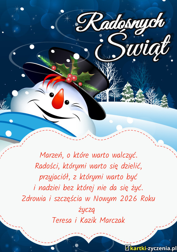 Zdrowia i szczęścia w Nowym 2026 Roku życzą Teresa i Kazik Marczak