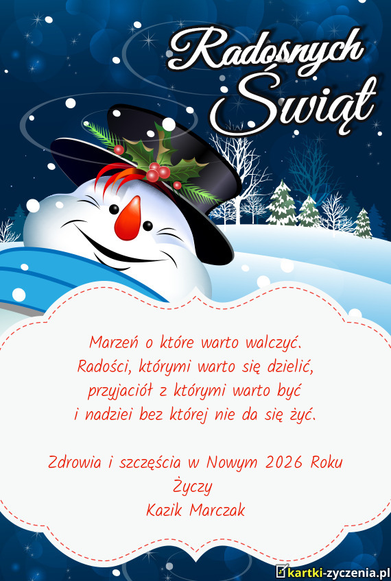 Zdrowia i szczęścia w Nowym 2026 Roku Życzy Kazik Marczak