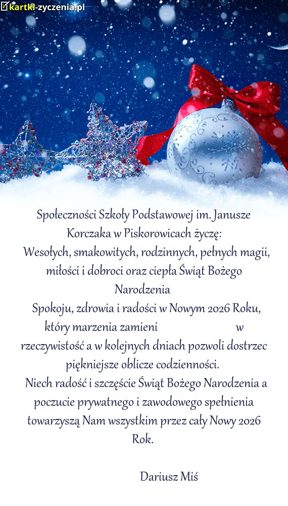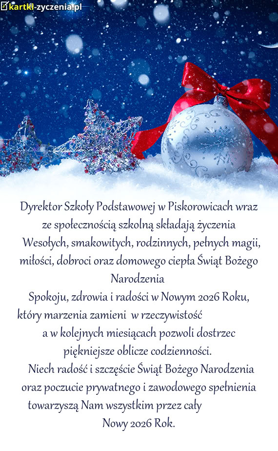 Dyrektor Szkoły Podstawowej w Piskorowicach wraz ze społecznością szkolną składają życzenia