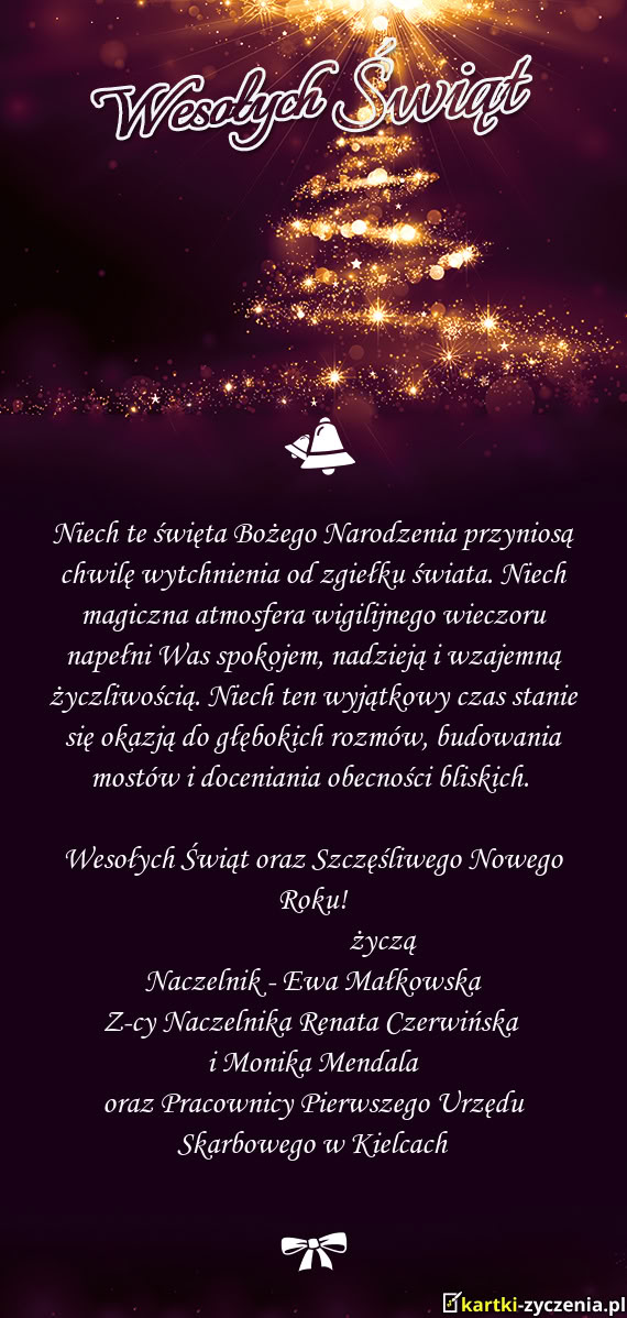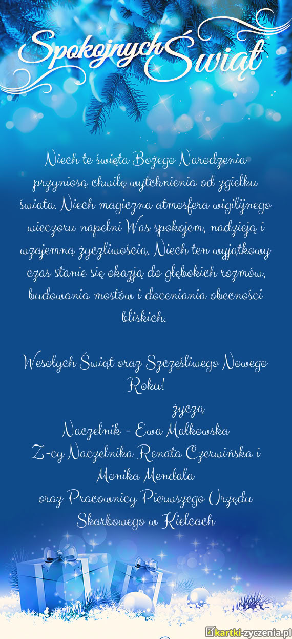 Niech magiczna atmosfera wigilijnego wieczoru napełni Was spokojem