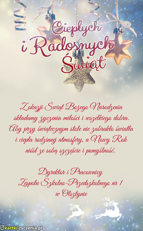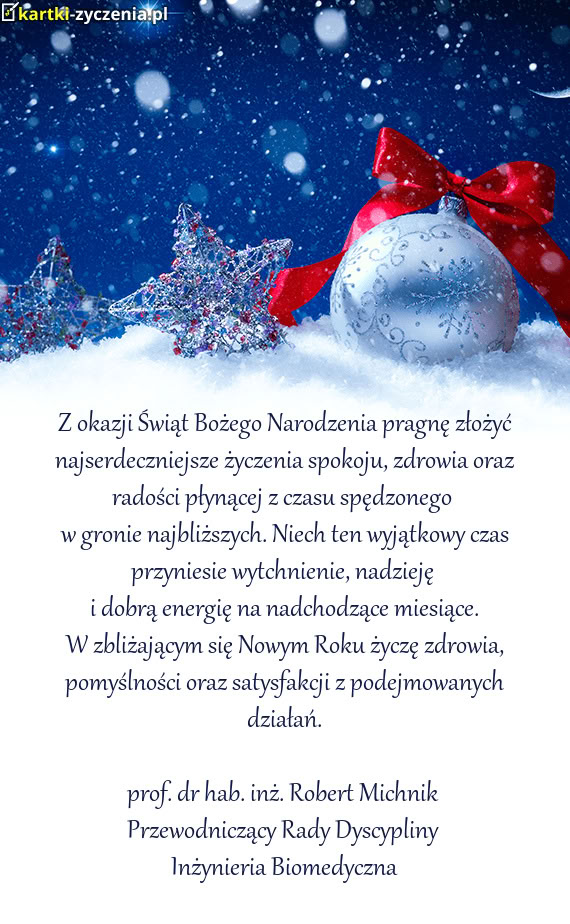 Z okazji Świąt Bożego Narodzenia pragnę złożyć najserdeczniejsze życzenia spokoju, zdrowia o
