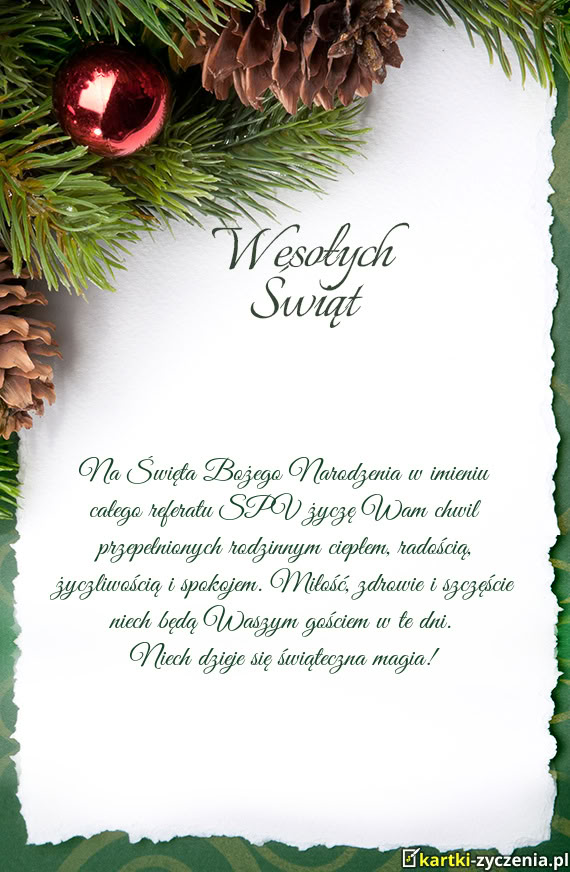 Na Święta Bożego Narodzenia w imieniu całego referatu SPV życzę Wam chwil przepełnionych rodz