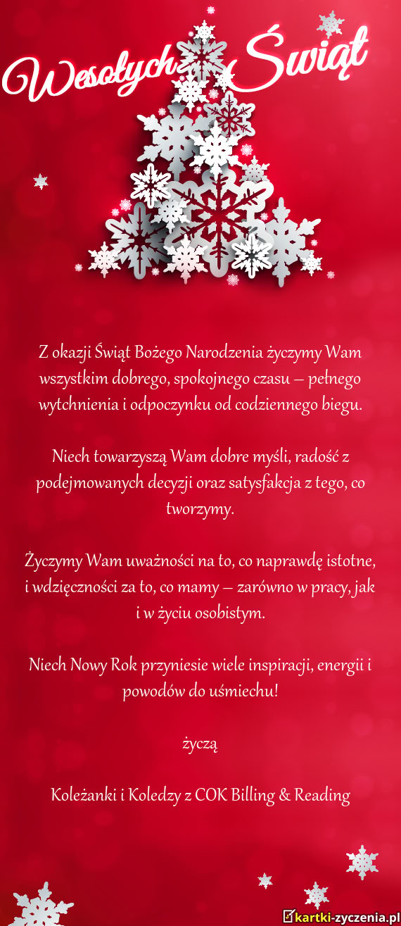 Niech nadchodzące Święta będą niezapomnianym czasem spędzonym bez pośpiechu i trosk