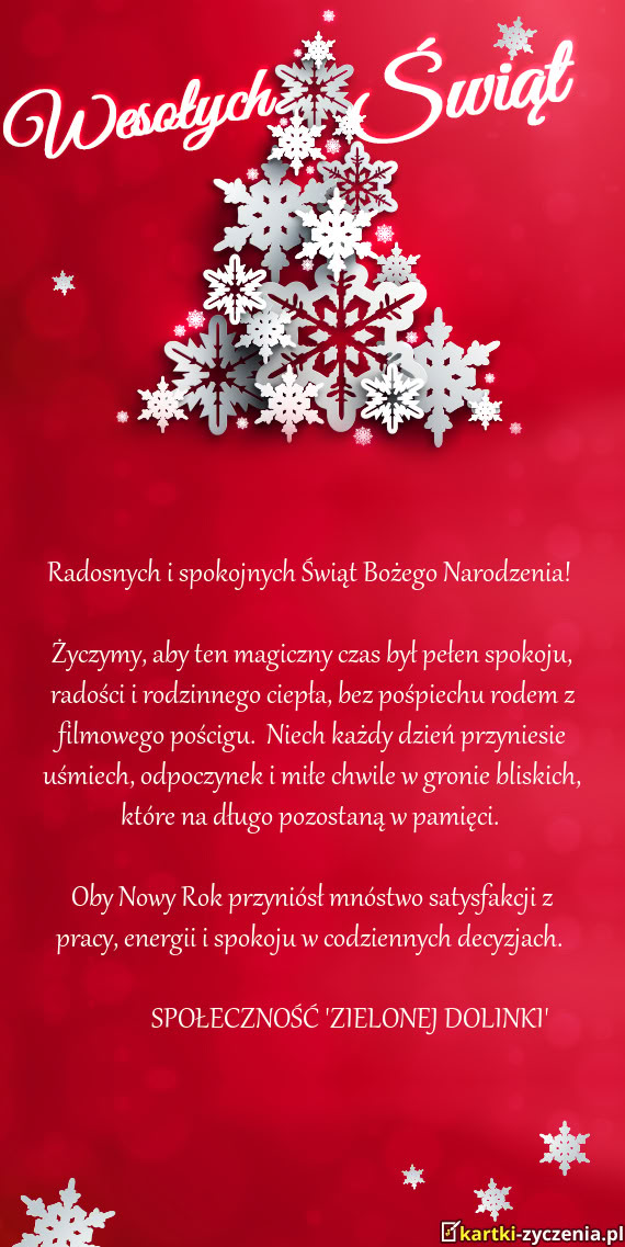 Życzymy, aby ten magiczny czas był pełen spokoju, radości i rodzinnego ciepła, bez pośpiechu r