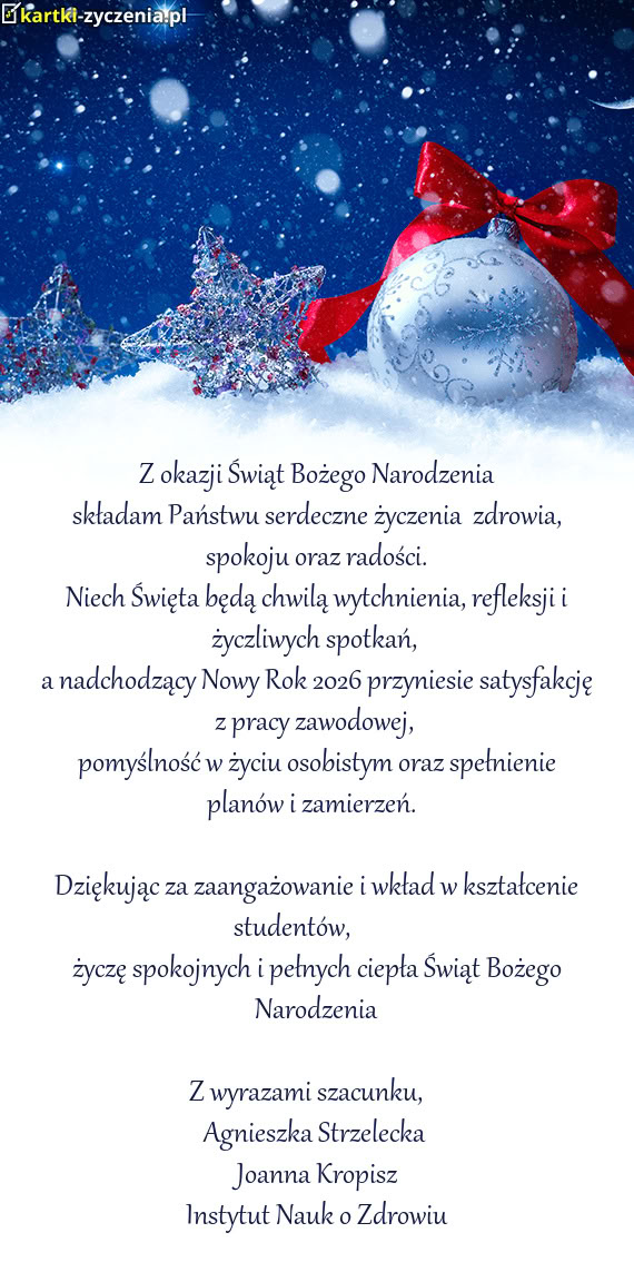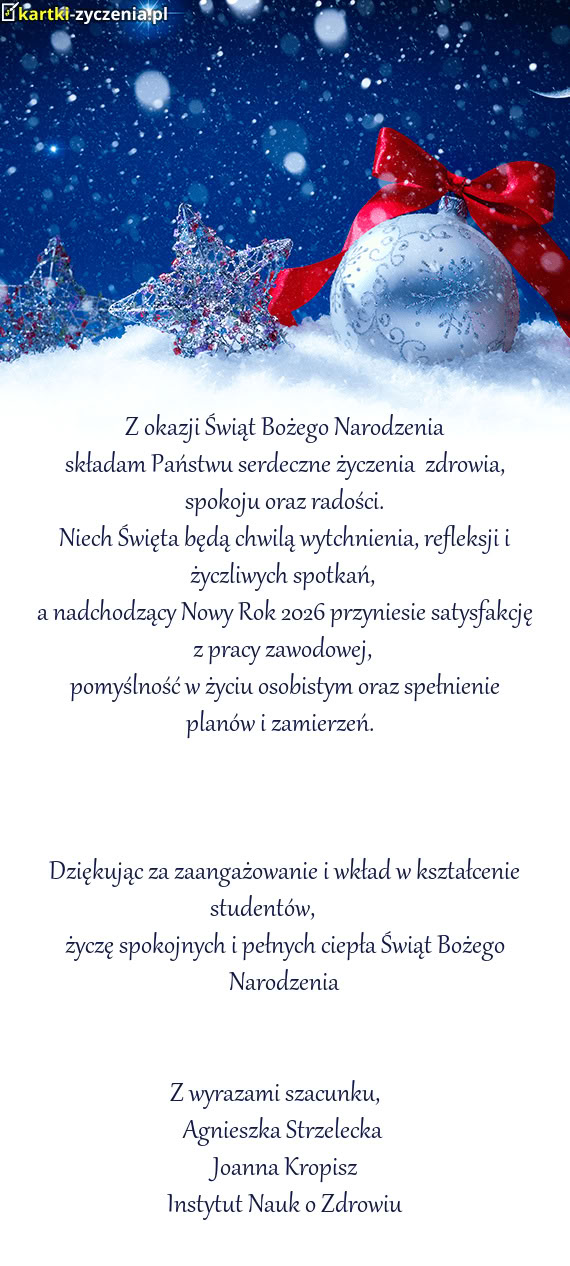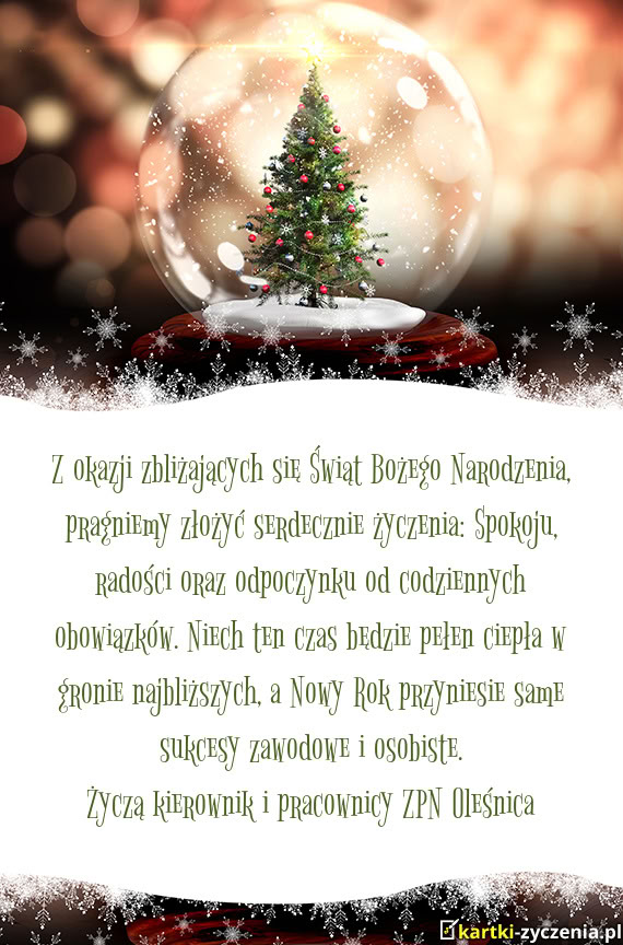 Z okazji zbliżających się Świąt Bożego Narodzenia, pragniemy złożyć serdecznie życzenia: S