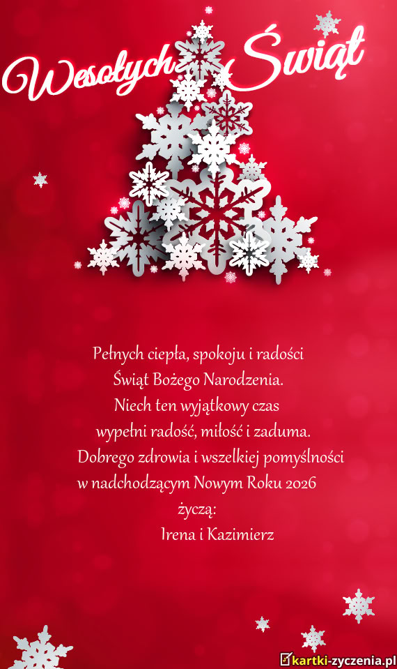 Dobrego zdrowia i wszelkiej pomyślności w nadchodzącym Nowym Roku 2026 życzą