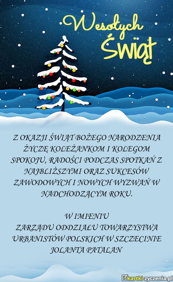 Z OKAZJI ŚWIĄT BOŻEGO NARODZENIA ŻYCZĘ KOLEŻANKOM I KOLEGOM SPOKOJU, RADOŚCI PODCZAS SPOTKAŃ