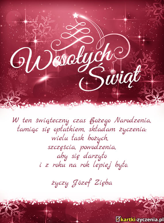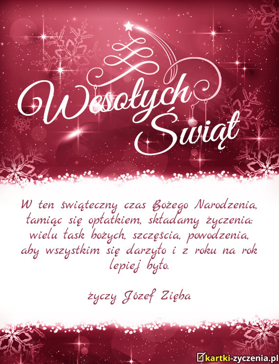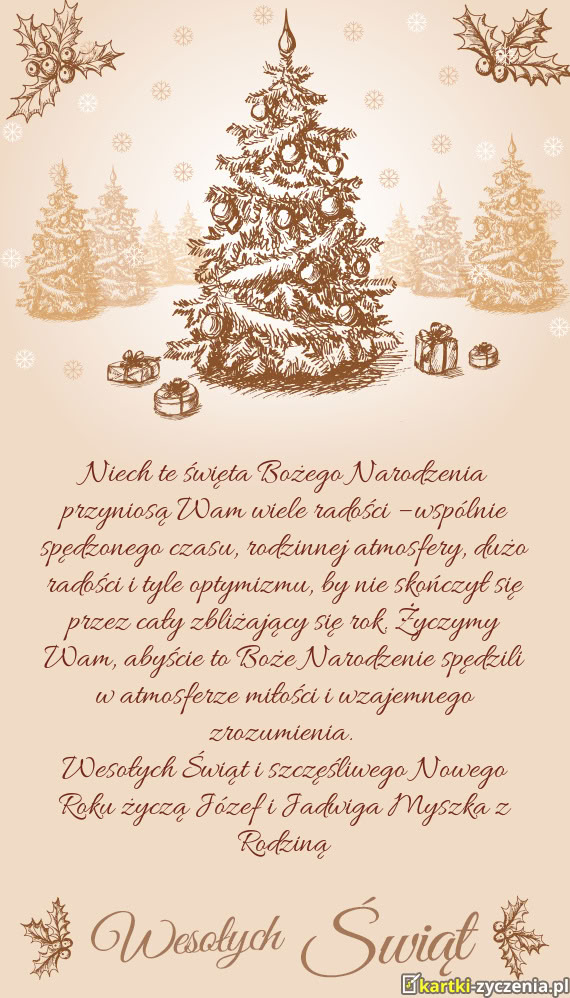 Wesołych Świąt i szczęśliwego Nowego Roku życzą Józef i Jadwiga Myszka z Rodziną