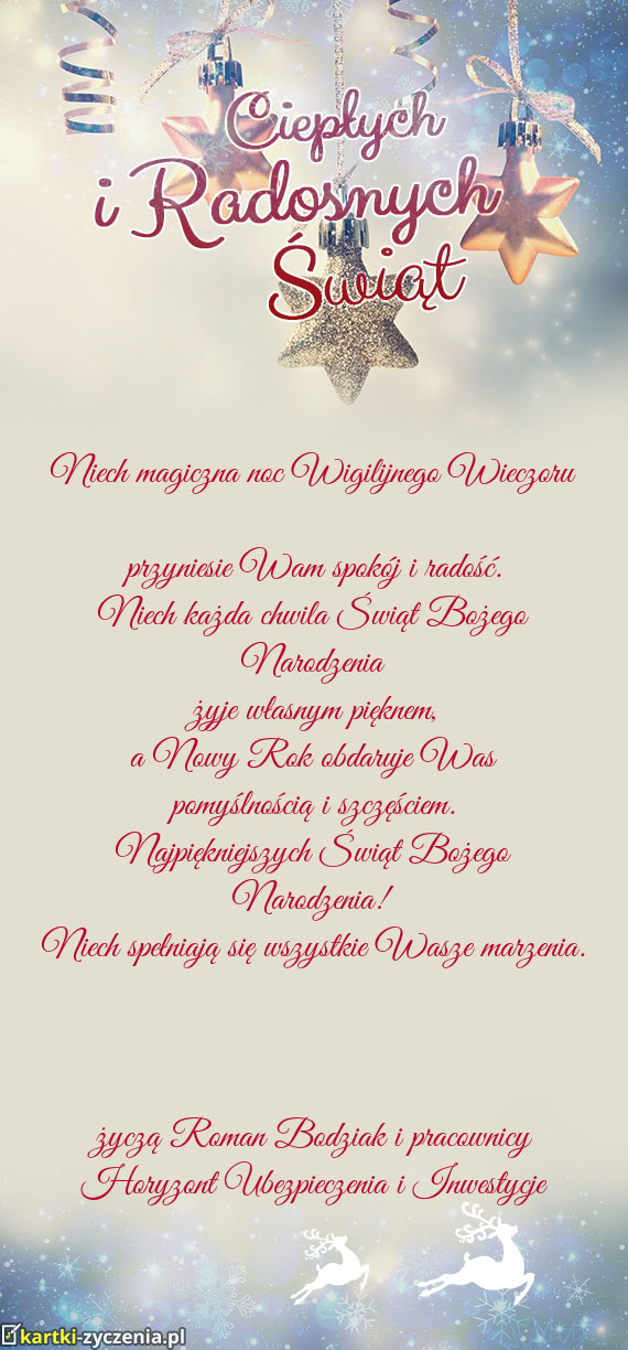 Z okazji Świąt Bożego Narodzenia składamy Państwu najserdeczniejsze życzenia spokoju, radości