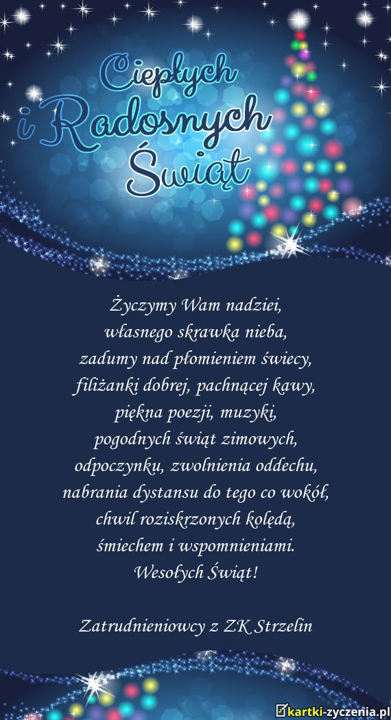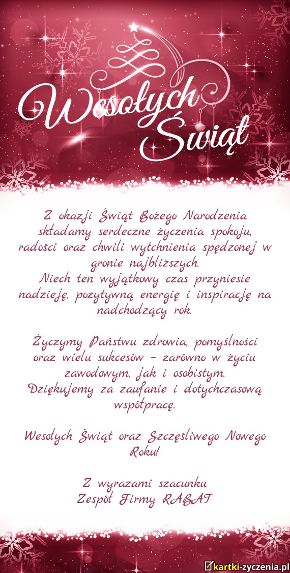 Z okazji Świąt Bożego Narodzenia składamy serdeczne życzenia spokoju, radości oraz chwili wytc