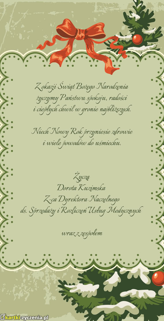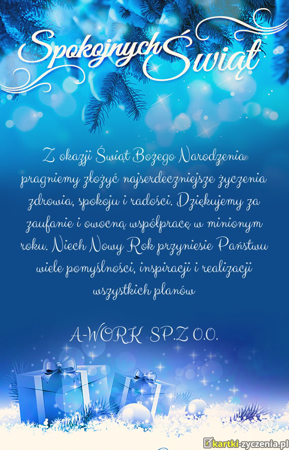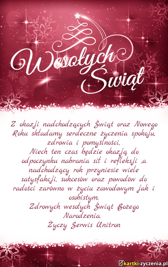 Z okazji nadchodzących Świąt oraz Nowego Roku składamy serdeczne życzenia spokoju, zdrowia i po