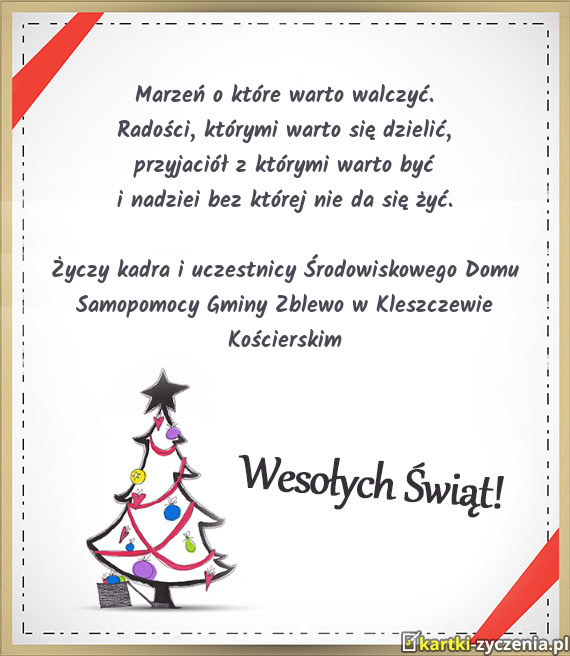 Życzy kadra i uczestnicy Środowiskowego Domu Samopomocy Gminy Zblewo w Kleszczewie Kościerskim